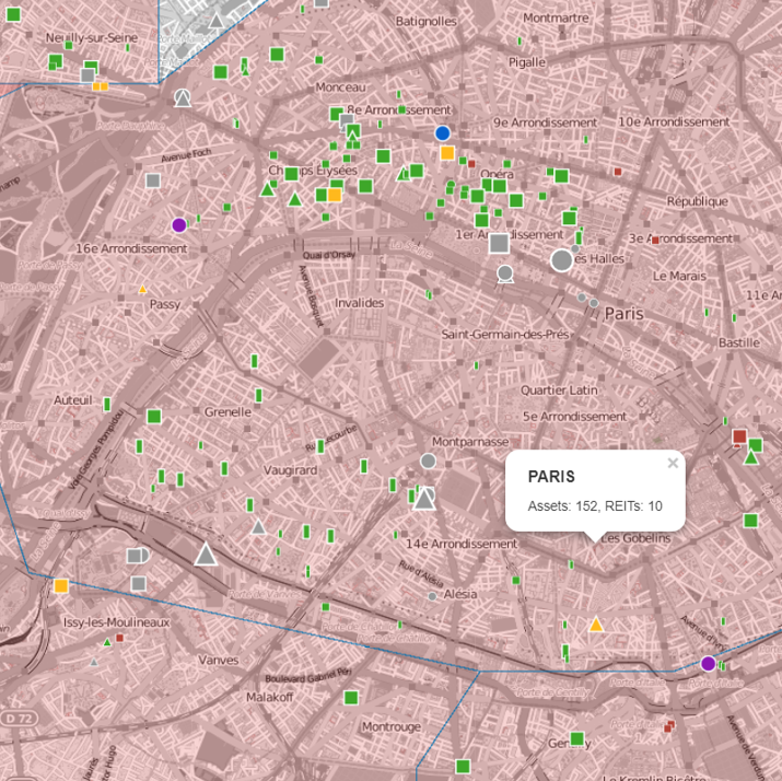 Our flagship product is a range of scores about the assets, cities and portfolios of REITs and private real estate funds.