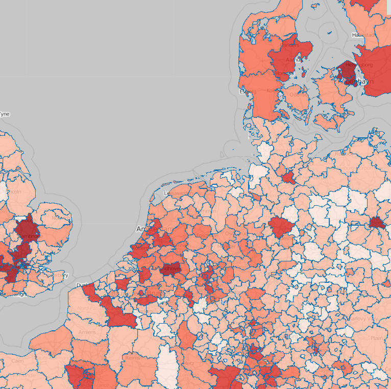 We really want you to test our numbers. A clear Pan-European perspective is rare. Data about European cities, regions and real estate markets are often blurred or biased by marketing or transaction purposes of advisors. Our scores are the result of an asset by asset analysis of fundamental strengths and weaknesses. Our fundamental clusters include education, innovation, consumer income & wealth, tourism, infra & transport, e-commerce, labour markets, economy, and demography. Each of those clusters has a number of underlying datasets for every city or region.